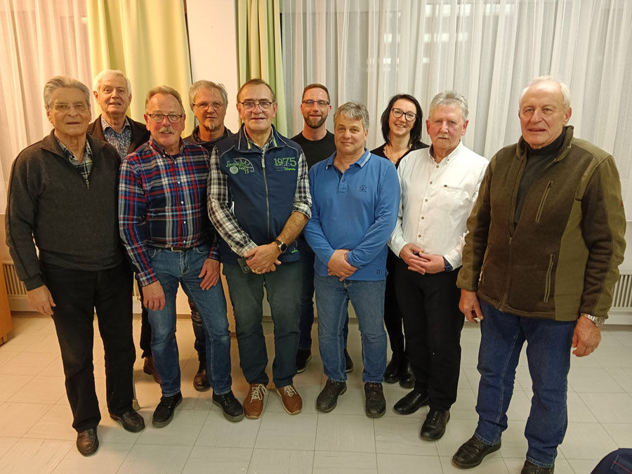 Vordere Reihe: Kassaprüfer Gerold Rosenstein, Obmann Stv. Fritz Sucher, Kassier Stv. Michael Weiss, Werkstattleiter Hermann Bidner, Schriftführer Ernst Mucher, Obmann Erich Körbler