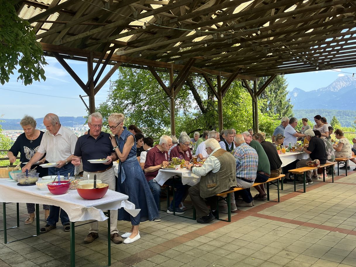Der Ortsverein Villach übernahm schon zum siebenten Mal die Organisation und verwöhnte die diesmal nur 50 Anwesenden mit Gegrilltem der beiden „Grillmeister“ Josef Strauß und Werner Sabernig. Die leckeren Salate und Süßspeisen wurden von den Kärntner „Krippendamen“ beigestellt.