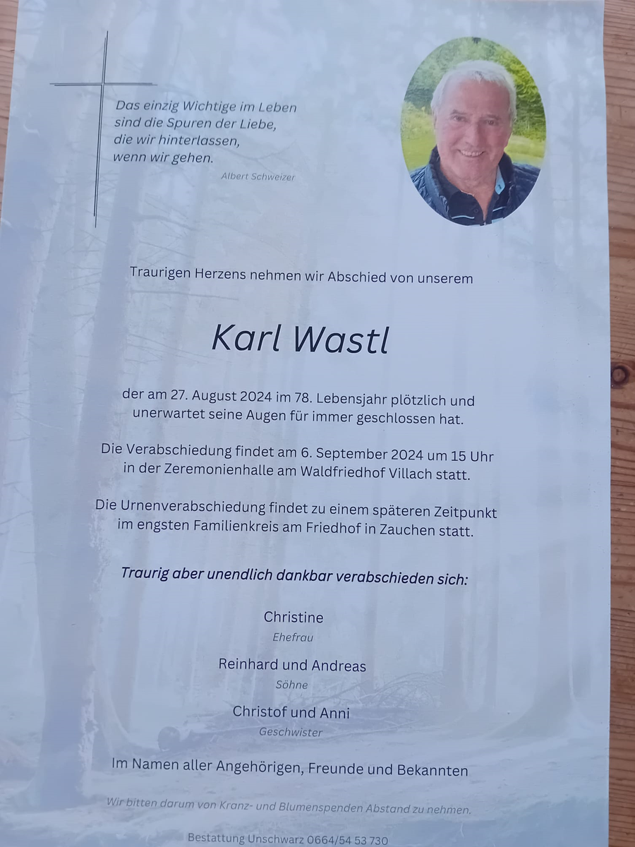 „Karl Wastl“ bekannt geben zu müssen.