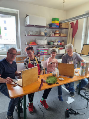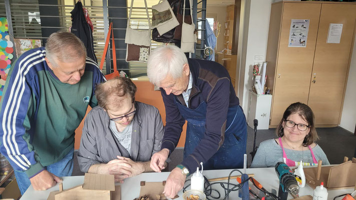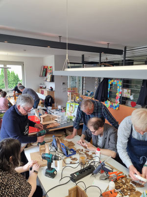 wurden die Krippenbauarbeiten (14 Kleinkrippen) mit den Klienten, Mitarbeitern der Tagesstätte und sechs Krippenbaumeistern nach intensiver und leidenschaftlicher Hingabe aller Beteiligten im Mai durchgeführt.