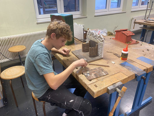 Krippenbauwerkstatt im Pfarrhaus der Kirche